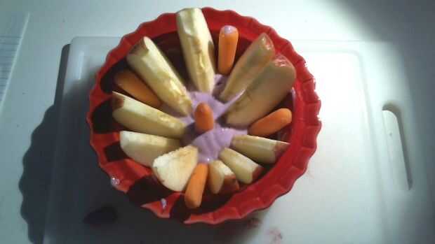 • Añadir en las bayas, en un círculo alrededor de la media zanahoria y luego uno frente el otro zanahorias
