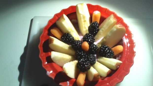 yo me Messin ' alrededor de uno por la mañana e hice este licuado.Paso 1: ingredientesde 1 200 ml frambuesa yop1 naranja1 manzanaUnos handfulls de bayas congeladas. (Yo usé congeladas bayas negras, frambuesas, arándanos).1/2 taza de jugo de uvaI taza