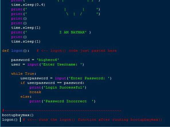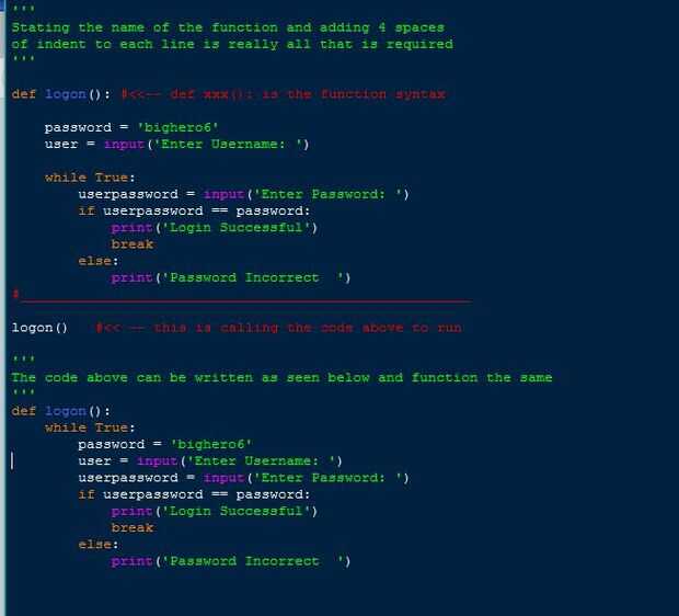 El siguiente paso fue conseguir el el script de inicio de sesión en el formato de una función por lo que puede ser fácilmente llamado y funcionó. Como se ve en la primera foto arriba es un tarea sencilla solo nombre la función def logon(): entonces modificar la sangría de un espacio en blanco para las líneas bajo el nombre.
