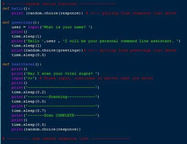 Ahora usted es un programador de python pero necesita un Kick-Start. Este paso sólo muestra las funciones que utilizo en mi diccionario de función Baymax CLI como comandos disponibles 'Baymax' me permite acceder desde el símbolo del sistema de programación de python muestra.