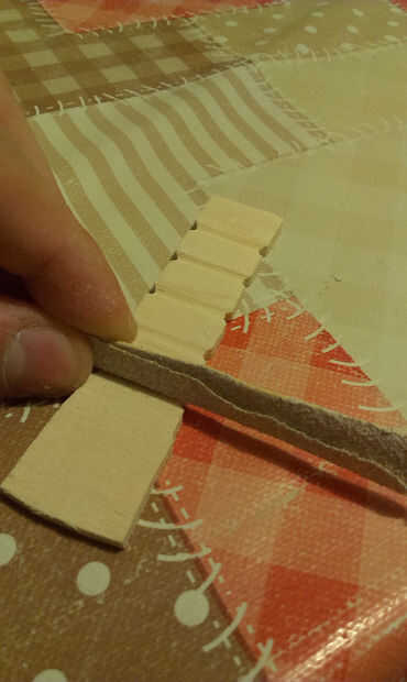 partes:1. cuñas de madera de2. pegamento de carpintero3. cinta4. las abrazaderas de muellePaso 1: Unir cuñas de madera 1. pegan cuñas de madera para formar una pieza sólida de madera2. Utilice abrazaderas para conseguir un asimiento sólido.Paso 2: Co