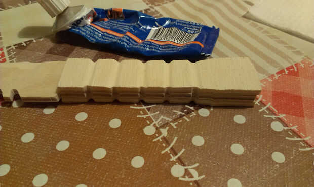 partes:1. cuñas de madera de2. pegamento de carpintero3. cinta4. las abrazaderas de muellePaso 1: Unir cuñas de madera 1. pegan cuñas de madera para formar una pieza sólida de madera2. Utilice abrazaderas para conseguir un asimiento sólido.Paso 2: Co