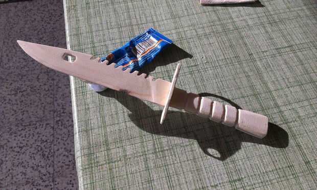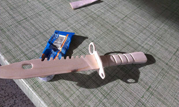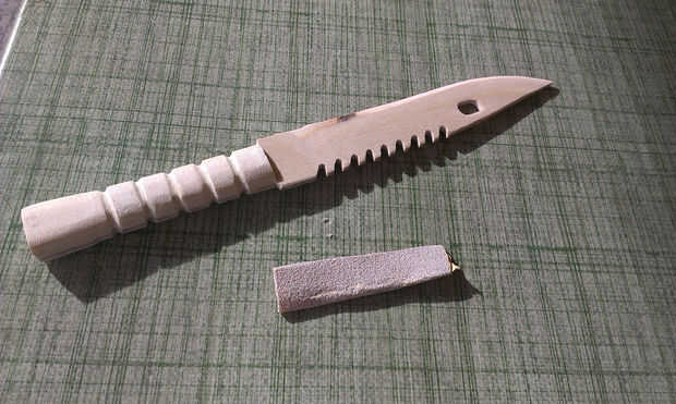 Mi hermano me ha dejado un cubo de herramientas oxidadas. Escondido entre las piezas impares fue esta bayoneta. Esta pieza hasta oxidado de metal fue pidiendo a brillar otra vez!Paso 1: Lijar y lijar y lijar más... he utilizado una serie de muy ásper