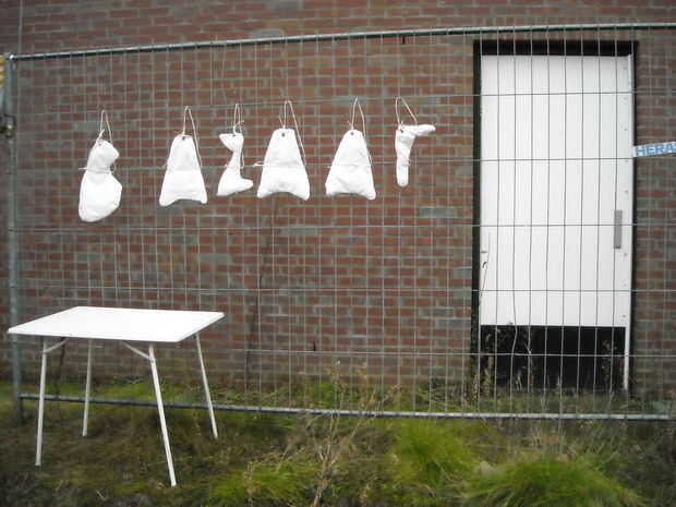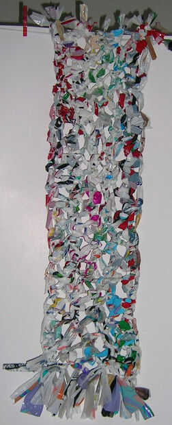 He hecho una estera de bienvenida hecha con cintas de plástico. (Ver imagen) Os adjunto banderas coloridas a palos al lado de la ruta.