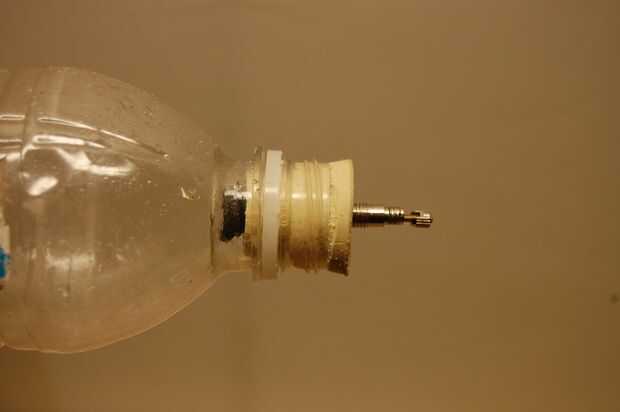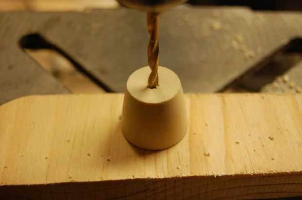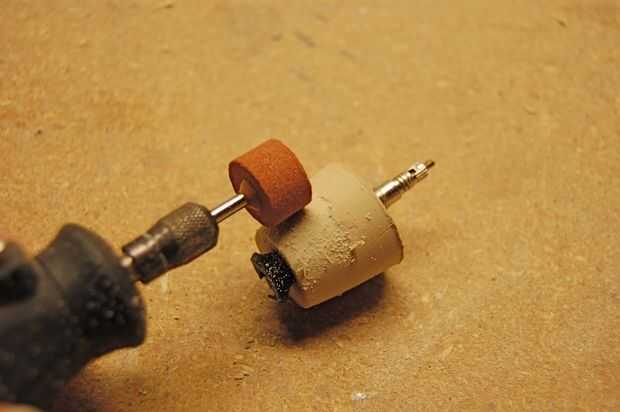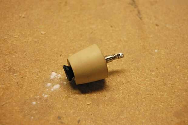 Más tarde usted puede encontrar que el tapón sobresale demasiado del cuello de la botella. Usted necesitará hacer un poco más estrecho el tapón. Me pareció que la mejor manera de hacer esto con un poco de lija en una Dremel (corte de la goma con un cuchillo es casi imposible). Simplemente use la Dremel para quitar capas finas de goma, hasta que el tapón se puede forzar lo suficiente en el cuello de la botella.