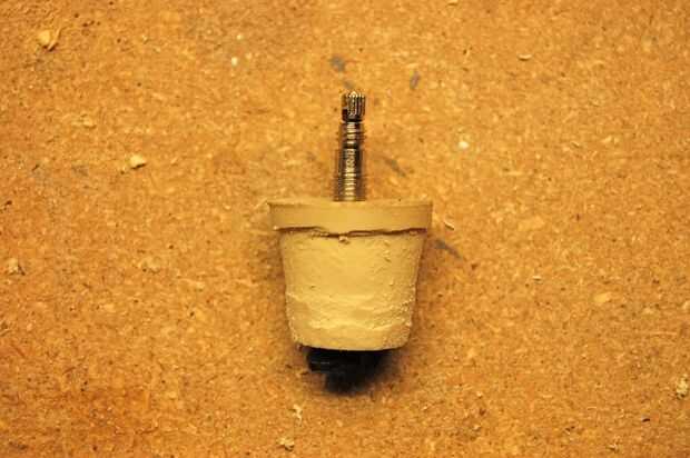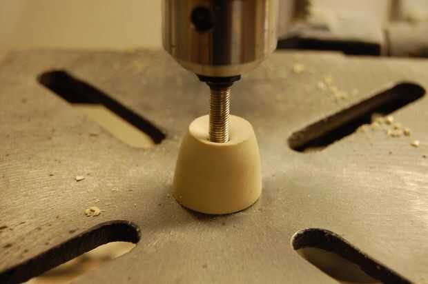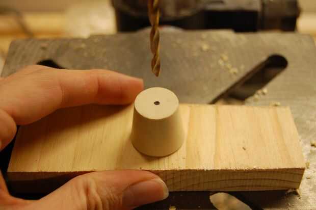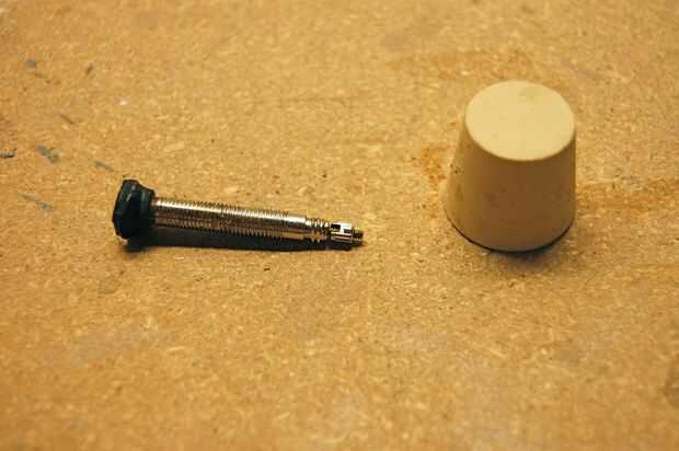 Seleccione una broca de taladro que tiene un diámetro ligeramente más pequeño que la válvula Presta. Instalar en la prensa del taladro, pero no trate de perforar un agujero en el centro del tope! En su lugar, utilice el taladro para empuje la broca a través del tapón. Luego, retire la broca del taladro y utilice la prensa para empujar la válvula Presta a través del tapón donde hiciste previamente un agujero.