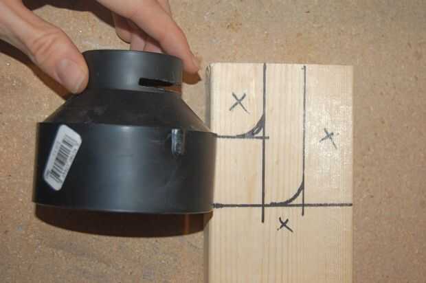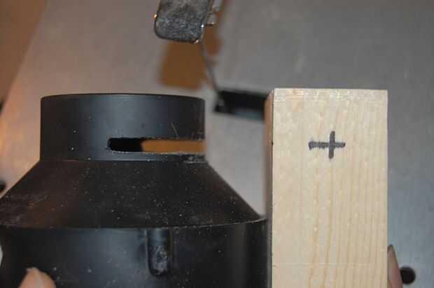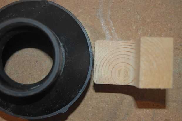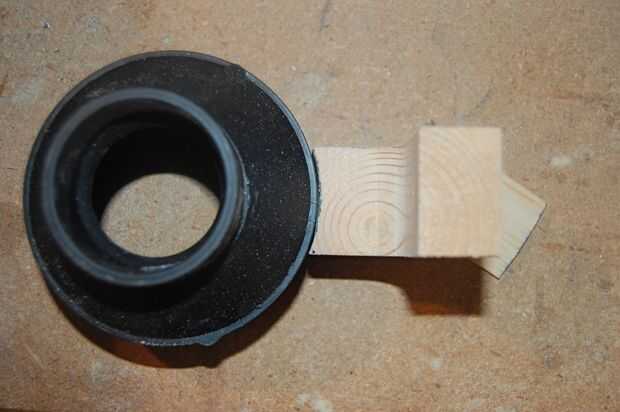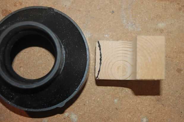 Agarra un pedazo de chatarra 2 x 4. Puede ser menos de 6" de largo. Usando el acoplador de reducción final como guía, dibuja a una especie de forma de L en la madera. El todo en forma de L debe ser aproximadamente tan larga como el acoplador de todo. La base de la forma de L debe ser sobre todo el tiempo tan sólo la sección más amplia del acoplador. Asegúrese de que todo tiene un tamaño grueso para que permanezca fuerte.