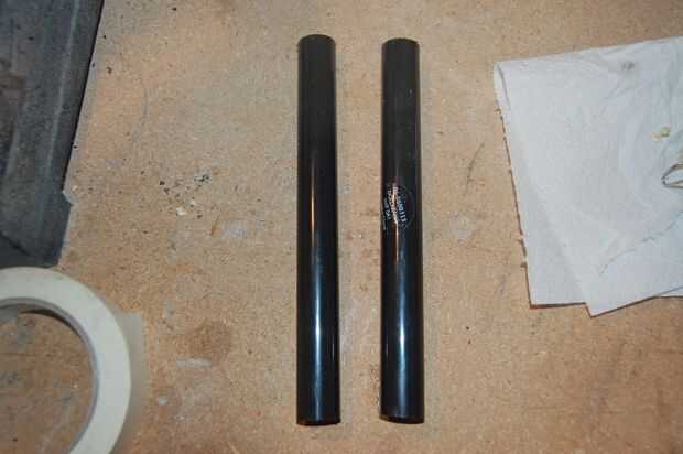 Primero corté el mango de émbolo del tocador en dos longitudes iguales. Son cerca de 8" de largo, pero puedes hacer que tiempo desea.
