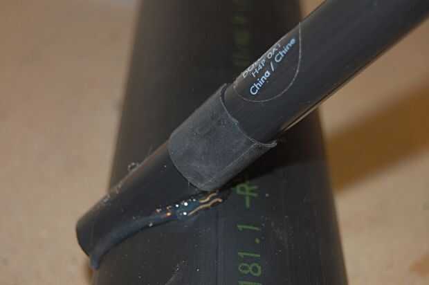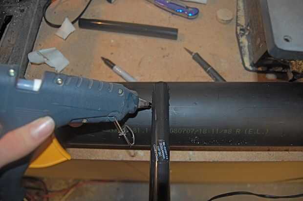Cuando se acaban los mangos, probar algunas posiciones en el tubo. Usted puede desear más cerca o más lejos del final, dependiendo de la longitud del brazo del usuario. También puede cambiar el ángulo para una mayor ergonomía. Pegar una manija con pegamento caliente, luego volver a colocar la manija del segundo y péguelo en el lugar también.