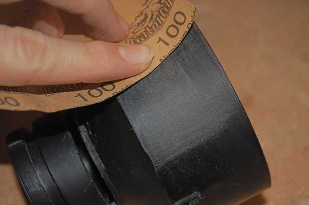Deslice el enganche de la reducción en el extremo de la tubería de 3" y empújela hacia abajo tanto como sea posible. La forma de L debe estar en la parte superior del tubo de lanzamiento. Probablemente no es necesario pegar en el lugar, ya que el ajuste será muy apretado. Sin embargo, podrá seguir adelante y utilizar pegamento si lo desea.