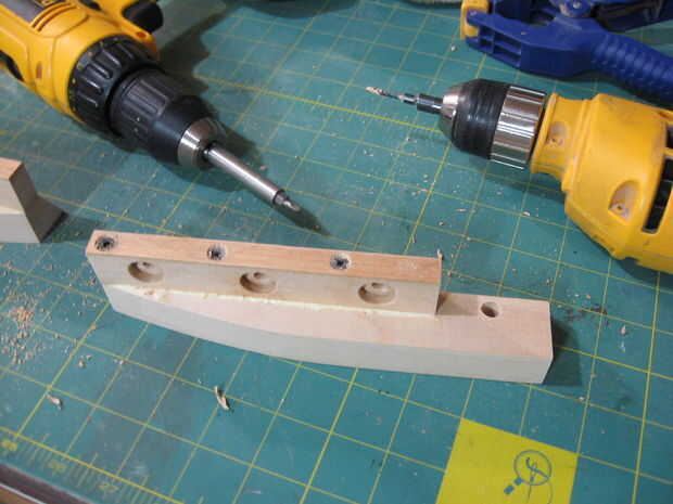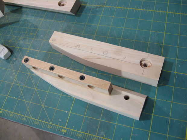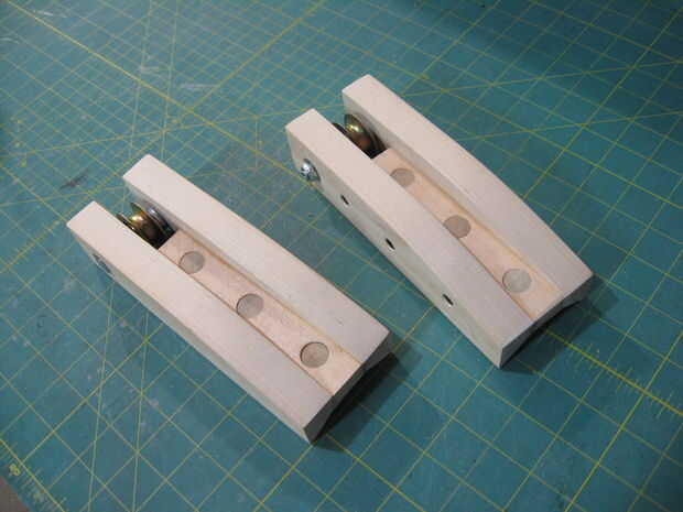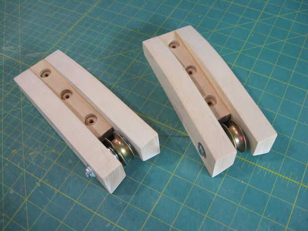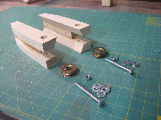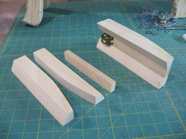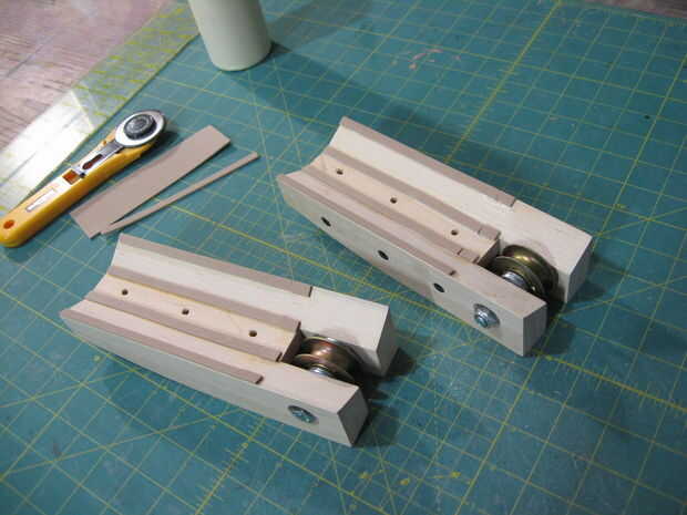 Varias piezas se cortaron y monté junto con tornillos y pegamento para crear una forma segura de colocar las poleas en la parte delantera de la bazooka. Estas piezas son cruciales, y las poleas deben colocarse en precisamente el sitio correcto para la cuerda de amortiguador auxiliar viajar según sea necesario dentro y fuera del bazooka. Ver información sobre la foto para más detalles.