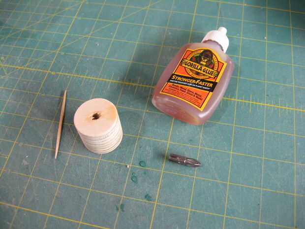 No tengo un desarmador stubby bastante para entrar en el interior de la tubería para poner todos estos tornillos en su lugar, así que tuve que hacer mi propia. Se puede ver en las últimas dos fotos arriba. Se hace de un tapón de madera creado por taladrar un agujero con un serrucho. Broca de phillip fue pegado en un orificio de 1/4" con pegamento del gorila. Este destornillador mini super funcionó muy bien y era el MVT de este proyecto.