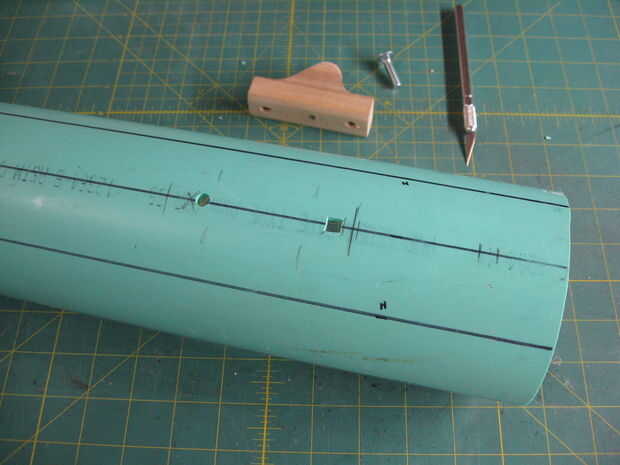 El bloque fue atornillado en su lugar con Transporte pernos con la parte posterior borde exactamente 3 1/2" desde el extremo posterior de la tubería de PVC.