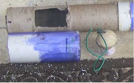 primero corte un agujero en el tubo de lanzamiento para la recámara. Luego afeitarse algunos de la cartulina de la parte superior por lo que todavía tienes que jam en el tubo pero no lo dañará. (aproximadamente 1 1/2 pulg) (ver imagen) Luego cepille algunos para la cubierta de culata de 5 pulg o más.