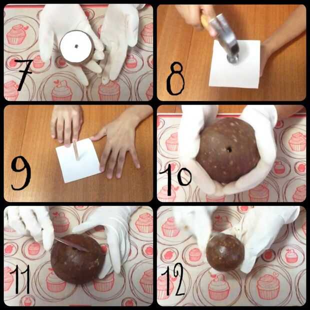 primero 1,2 lb torta pop masa, hacer una esfera y refrigerar, luego Mida la altura del palo de madera, tiene que ser 3cm más que la esfera.