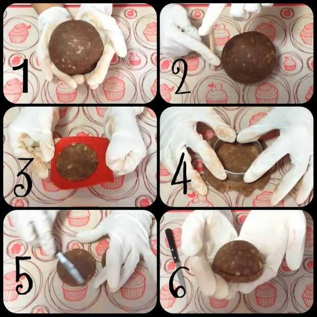 A continuación, reanudar la esfera hacer un agujero justo en el centro y cubrir toda la esfera y la mini media esfera con una capa de crema de mantequilla fina. Cuando termine de guardar en la nevera otra vez.
