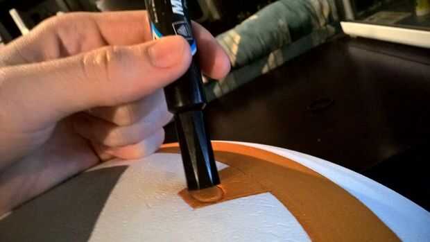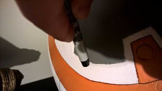 La ronda, grabado los detalles simplemente utilicé un bolígrafo Sharpie. Utilicé la base de la misma en ángulo para grabar los detalles gris. Y color alrededor de los círculos. Simple como eso!