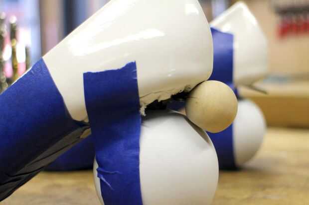 Usé más pequeño 1/2" decorativo bolas que encontré en una tienda de artesanía para la cabeza de BB-8. Estas bolitas ya fueron flatted en una porción, me ahorro algunos lijado.