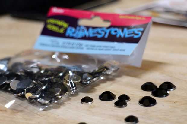 Para hacer el adorno he utilizado 2mm de espuma de artesanía y pequeños diamantes de imitación de plástico negro. La óptica más grande es una de las más pequeñas bolas de madera que usé para la cabeza en el talón por la mitad y pintada de negro.