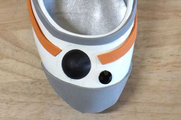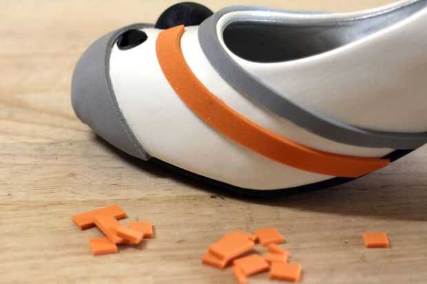 Cortar la espuma en las tiras de lata y los colocaba en los lugares había bosquejado en el otro zapato, luego les pegan E6000. Esta parte tomó un tiempo para pegar luego la cinta hasta el seco en el lugar correcto.