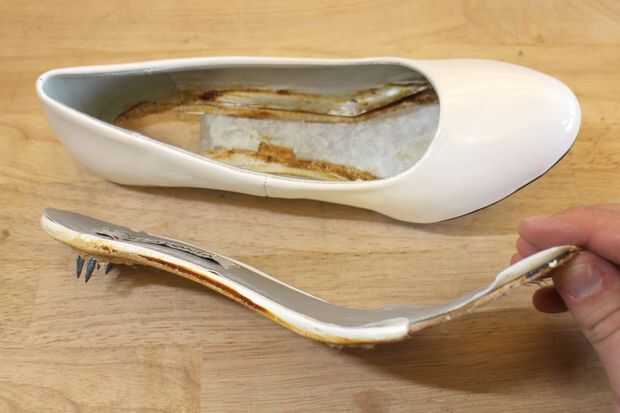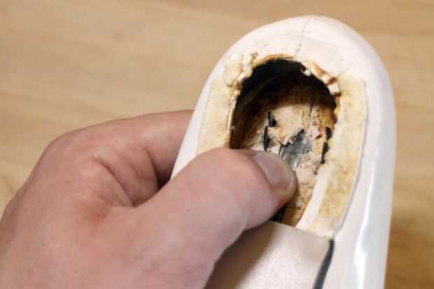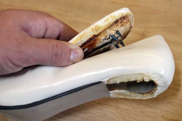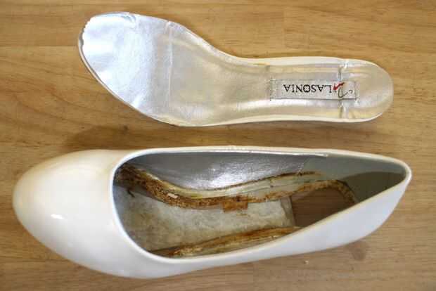 El inserto de zapato puede eliminarse presionando cuidadosamente el inserto de la izquierda abierta de donde quitó el talón. El inserto se pega en el zapato, pero con un poco de fuerza se puede quitar.
