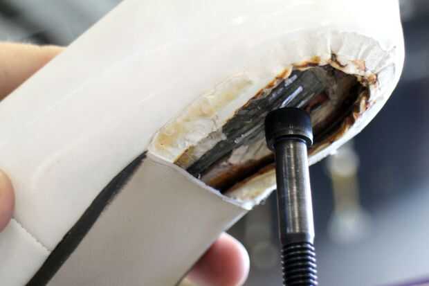 El tapón fue colocado contra la caña del metal en la plantilla del zapato y situado, entonces un ligero ángulo era tierra en la tapa para que coincida con la pendiente de la zapatilla.