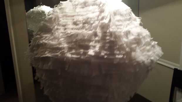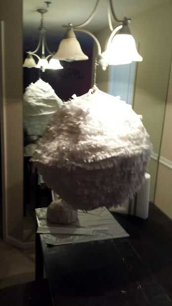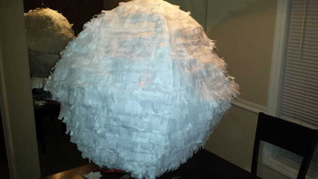 Empezar el proceso de cubrir la esfera completa con papel de seda. comprado en la tienda de dólar.