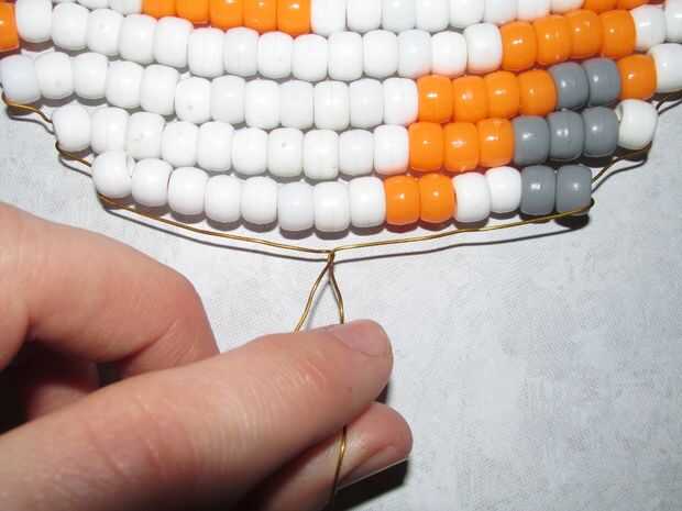 Una vez que estés seguro de que tienes todos los granos en el orden correcto, tome los extremos del cable y tuerza juntos. Puede utilizar un par de pinzas si usted quiere conseguir apretado como el mio (Fíjate en la foto final para ver cómo apretado lo conseguí). Entonces cuando parece mina recorte los extremos con un cortador de alambre a la longitud de su deseo.