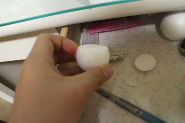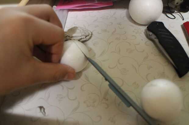 Ahora corte la pequeña bola de espuma de poliestireno con el cúter.