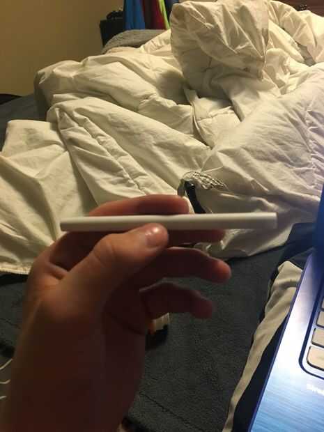 Usted pop la punta de la pluma a y salir la tinta. A continuación se quita el tapón del extremo de la pluma. Debe verse así.