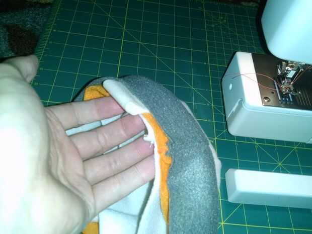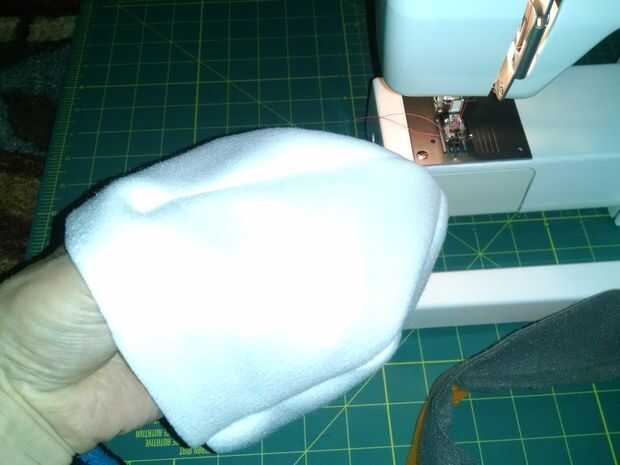 Nota antes de empezar a coser: hay una costura en cada capa de la tela está cosiendo. Te recomiendo compensando las costuras lo suficiente como para que quepan, como puede ser difícil de conseguir a través de todo eso paño grueso y suave. Empezar la costura antes del área de costura, por lo que se puede colocar como le gusta.