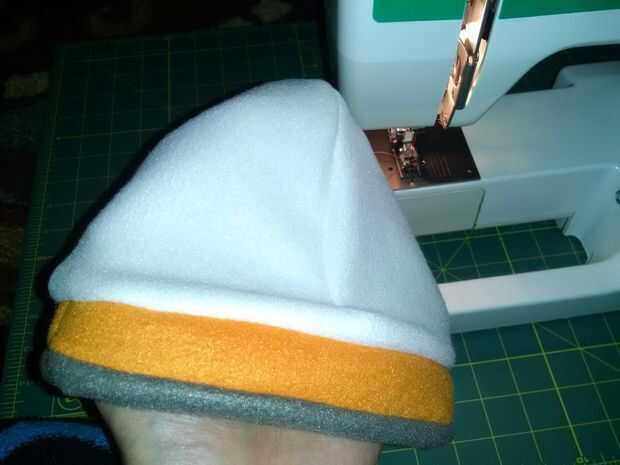 Al coser la vuelta, tiene un sombrero blanco con una franja naranja grande y una pequeña franja gris. Acabado aquí si desea una interpretación minimalista del sombrero de BB-8. :-)