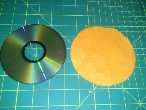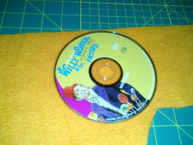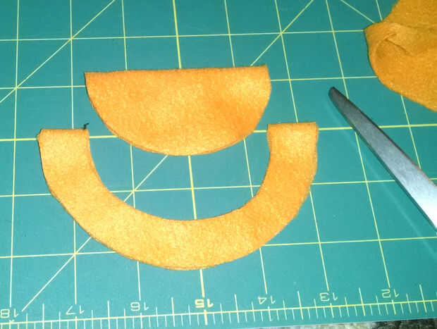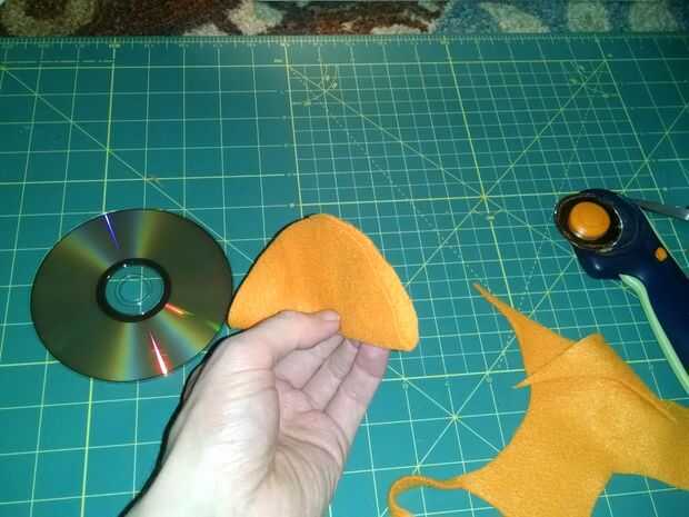 Este sombrero de tamaño, un típico dvd funciona bien para el círculo naranja. Llevó a cabo el dvd y utiliza un cortador circular para cortar alrededor de ella, pero en su lugar podría usar una pluma de tela para localizar la forma y cortar con las tijeras.
