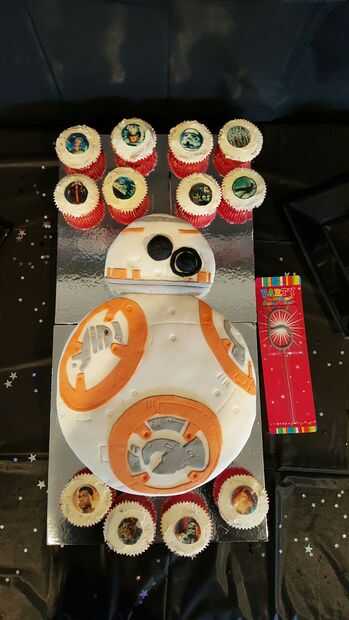 Conseguí esta idea de hacer una torta temática de Star Wars cuando un cliente utiliza mi escultura de Yoda para su pastel de cumpleaños. Creo que es divertido tener temas de boda y para parejas de fan de Star Wars, esta es una forma de mostrar la fue