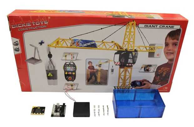 En esta guía paso a paso te llevaremos a través de la personalización de una grúa de juguete que puede ser controlado con una micro de BBC: poco, usando la tarjeta Driver Motor Kitronik para la BBC micro: broca y acelerómetro integrado de BBC micro: bit para detectar inclinación y movimientos.