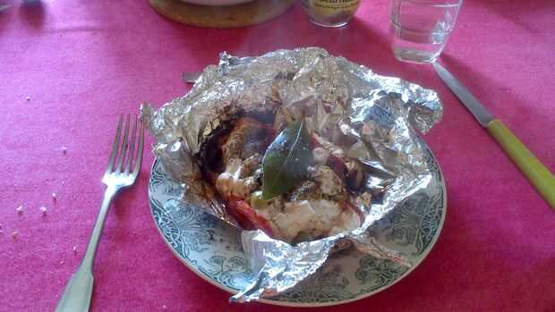 OK, el verano está aquí y es hora de hacer barbacoas. Hoy en día, en vez de poner mi carne y embutidos de la red, he probado una receta en una revista: papillotes de gallina, asados en las brasas de la barbacoa.