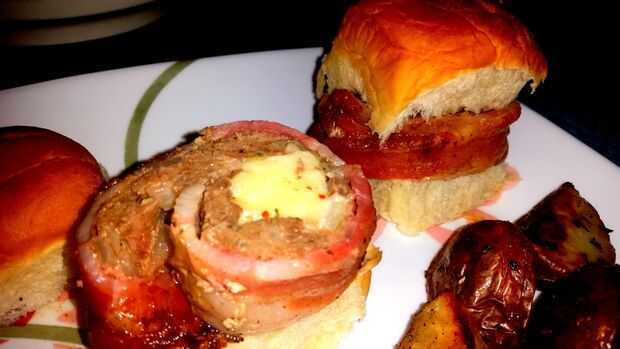 Montar los ingredientes esenciales.1 libra carne molida de resAlgún tipo de pan crujienteQueso azul2 cebollas verdesSalsa BBQMigas de pan PankoY por supuesto, tocinoPreparación tendrá una media hora y una hora para cocinar. Tiempo de trabajo total es
