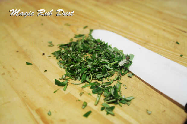 Después de asar a la parrilla, romero picado hojas será oscura y crujiente. Da-yum!