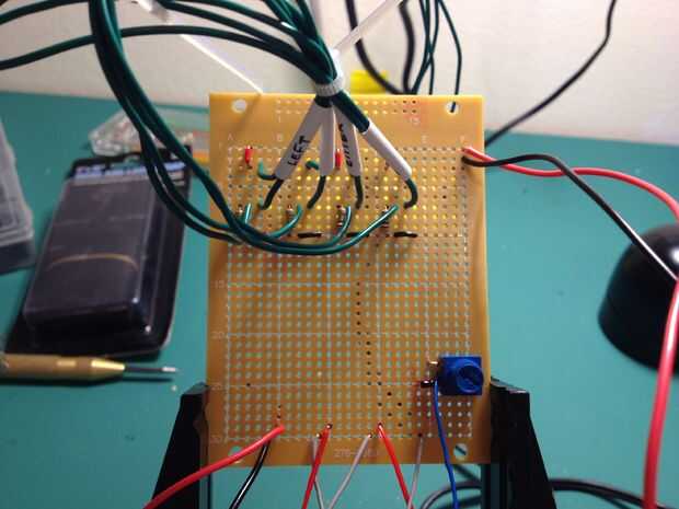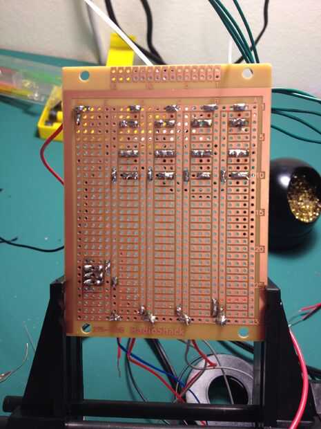 Ahora es el momento para la soldadura de la PCB. He utilizado un tablero de PC del componente universal de RadioShack en una pizca; Si hubiera tenido más previsión, habría pedido este estilo protoboard perma-protoboard de Adafruit. Pero el "esquema" adicional que diseñé para la Junta Directiva de RadioShack.