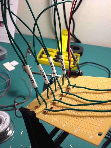 3. Para cada botón el alambre, la soldadura en dos cables sin conectar, a soldar nuestros cables expuestos botón momentáneamente.