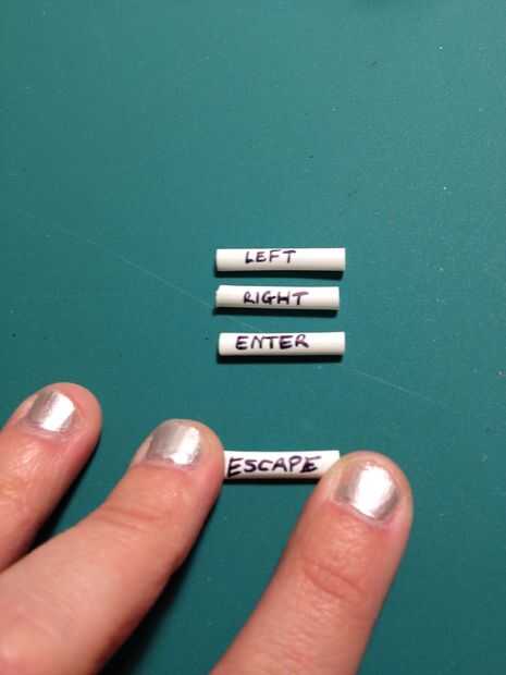 4. También corte una tira pequeña de blanco encogible en cuatro trocitos y escribió el nombre de cada botón en la tubería. No reducirlo, simplemente deslizarse sobre los cables por lo que puedo identificar rápidamente en el futuro si es necesario.