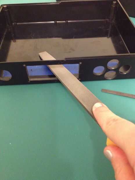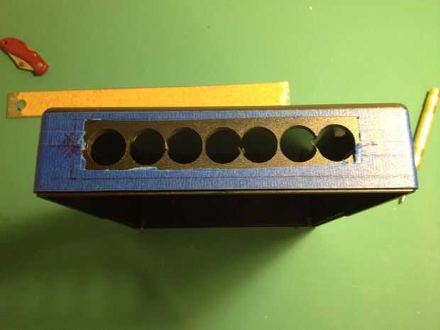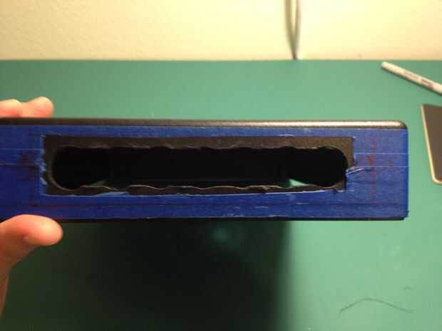 - Usar una herramienta Dremel rotary y un disco abrasivo, limpiar los bordes del agujero, perfeccionar la forma.