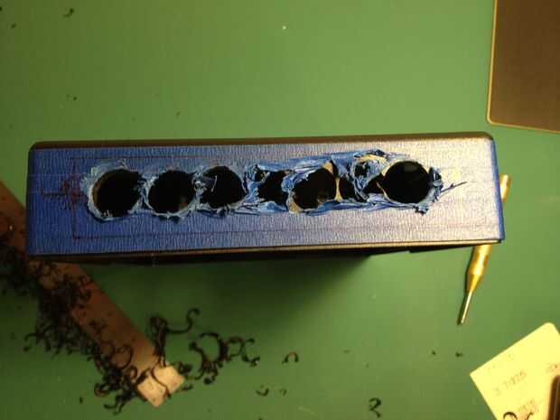 - usando un taladro de paso poco, Lentamente y con luz a moderada presión en el taladro, haga los agujeros a los tamaños adecuados (Foto 1).