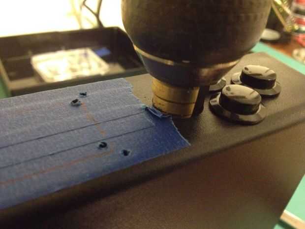 - Utilizando una broca de paso, perfore a lo largo de la línea central, basándose en los agujeros que perfora puntos (Foto 3).