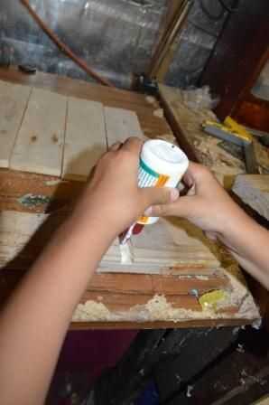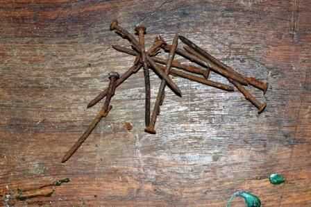 2. Utilice los clavos oxidados que mantuvo y un martillo en cada estante.