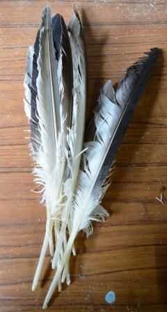 Las plumas que encontré eran todas iguales y vinieron de algún tipo de gaviota. La madera era genial ya que tiene una grieta natural en ella que las plumas muy bien equipadas.