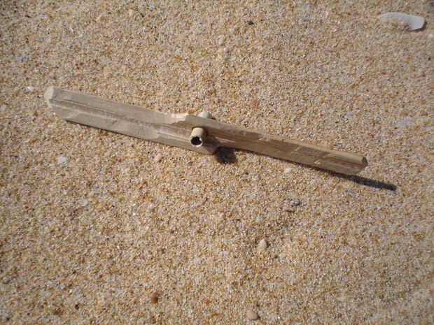 Inserte el eje en el espaciador y equilibrar la hélice. Si un lado tiende a pivotar hacia abajo, es más pesado que el otro. A tallar algunas virutas en la espalda, hasta que ambos lados compensan mutuamente.