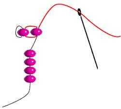Traer la aguja bajo la parte inferior de la siguiente perla en hilo. Tire hacia arriba a través de. Deben enrollar para arriba al lado del grano primera, como se muestra en este diagrama.