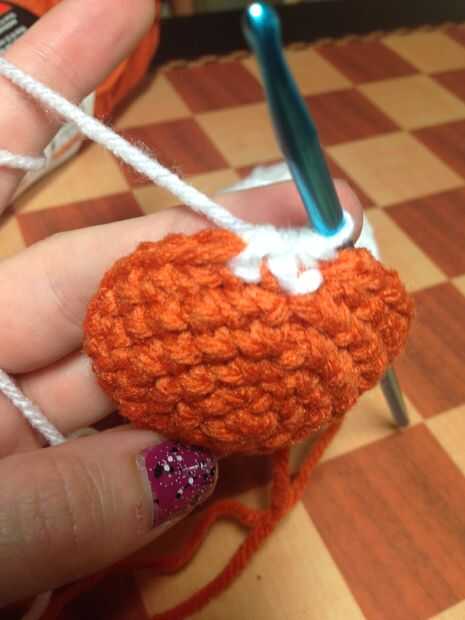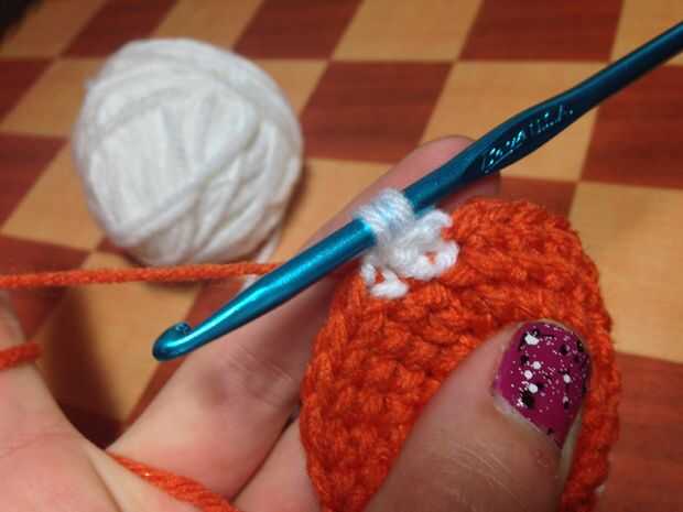 Usando blanco, sc, sc sc (interruptor naranja) en cada puntada (sc total 25)