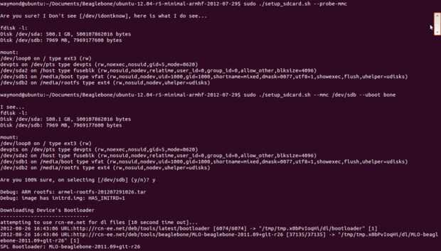 $ sudo./setup_sdcard.sh - mmc/dev/sdX - uboot hueso